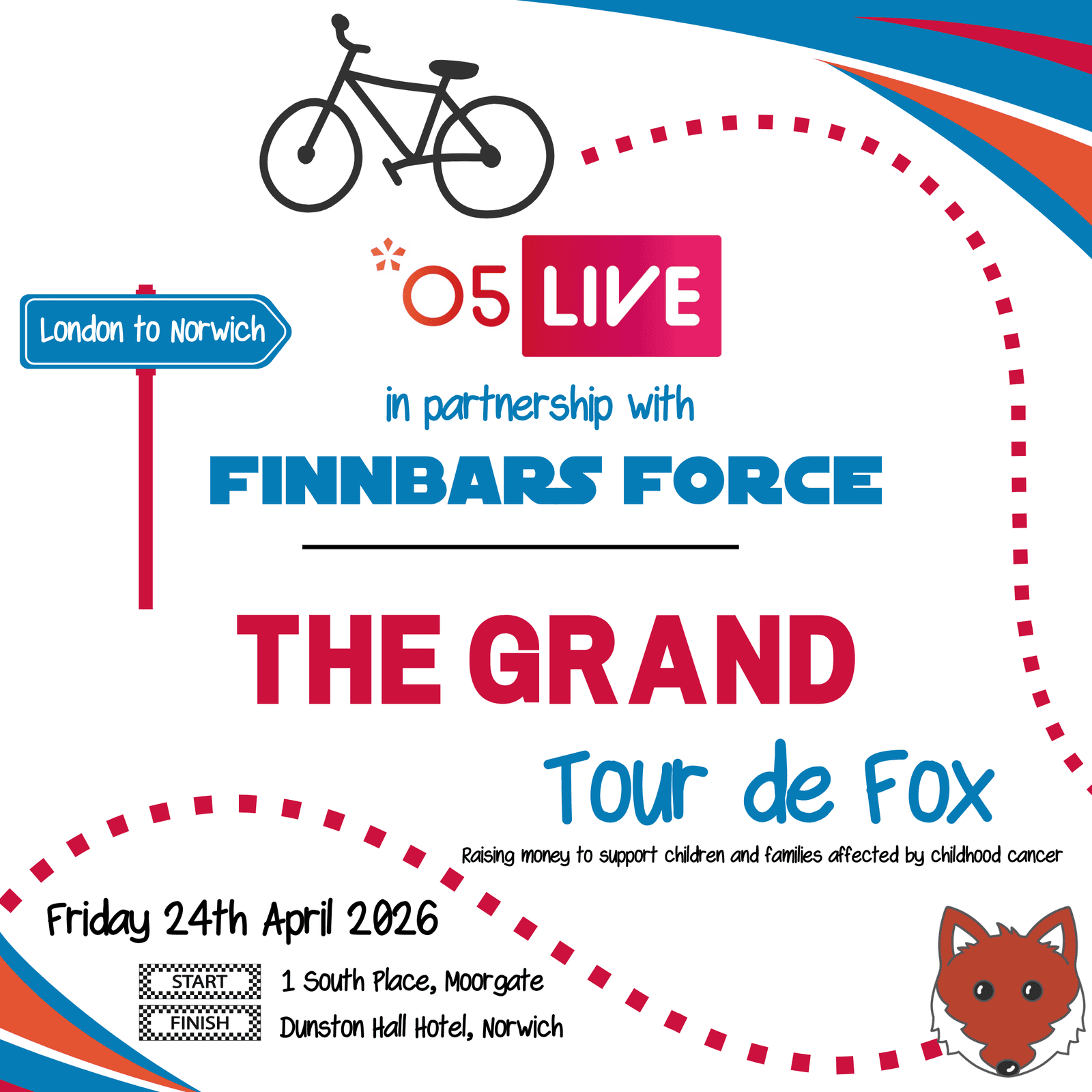 O5 Live and Finnbar’s Force will provide the route, cycling shirts, drinks, snacks, a volunteer support team, and a support vehicle to ensure riders are fully looked after throughout the ride. Riders can also stay overnight in Norwich and enjoy the sparkle and glam of the Little Fox Ball, or return home after completing the ride—your choice.